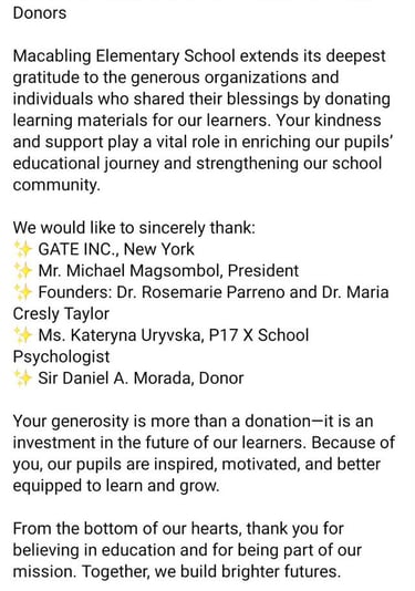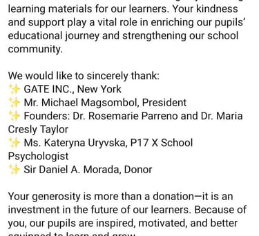 GATE New York's Learning Materials Donation in Sta. Rosa Laguna